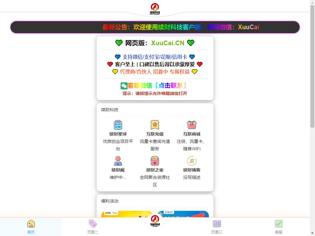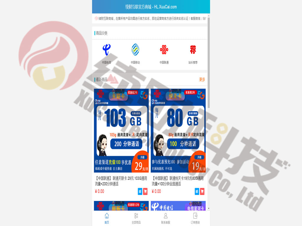 - 2019.11.08:专业提供物联网卡/无限流量卡/5g套餐/流量池等产品的批发零售应用:续财互联商城正式运营